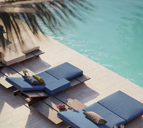 حوض سباحة لامتناهي وإمكانية الوصول إلى الشاطئ